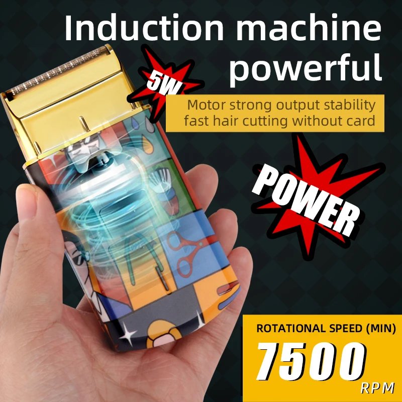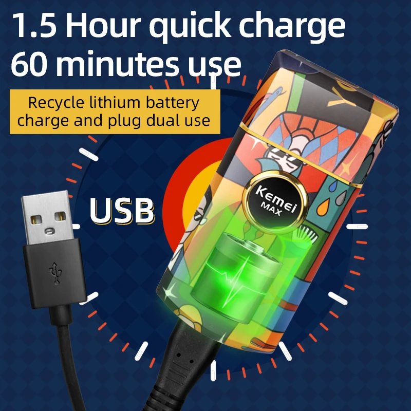 Kemei-Afeitadora eléctrica recíproca de doble lámina de titanio, maquinilla de afeitar profesional con acabado de peluquero, patrón de grafiti para hombres, KM-RS7098